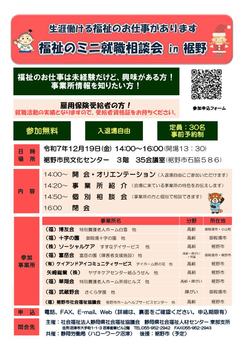 E-mail jinzai-tobu@shizuoka-wel.jp